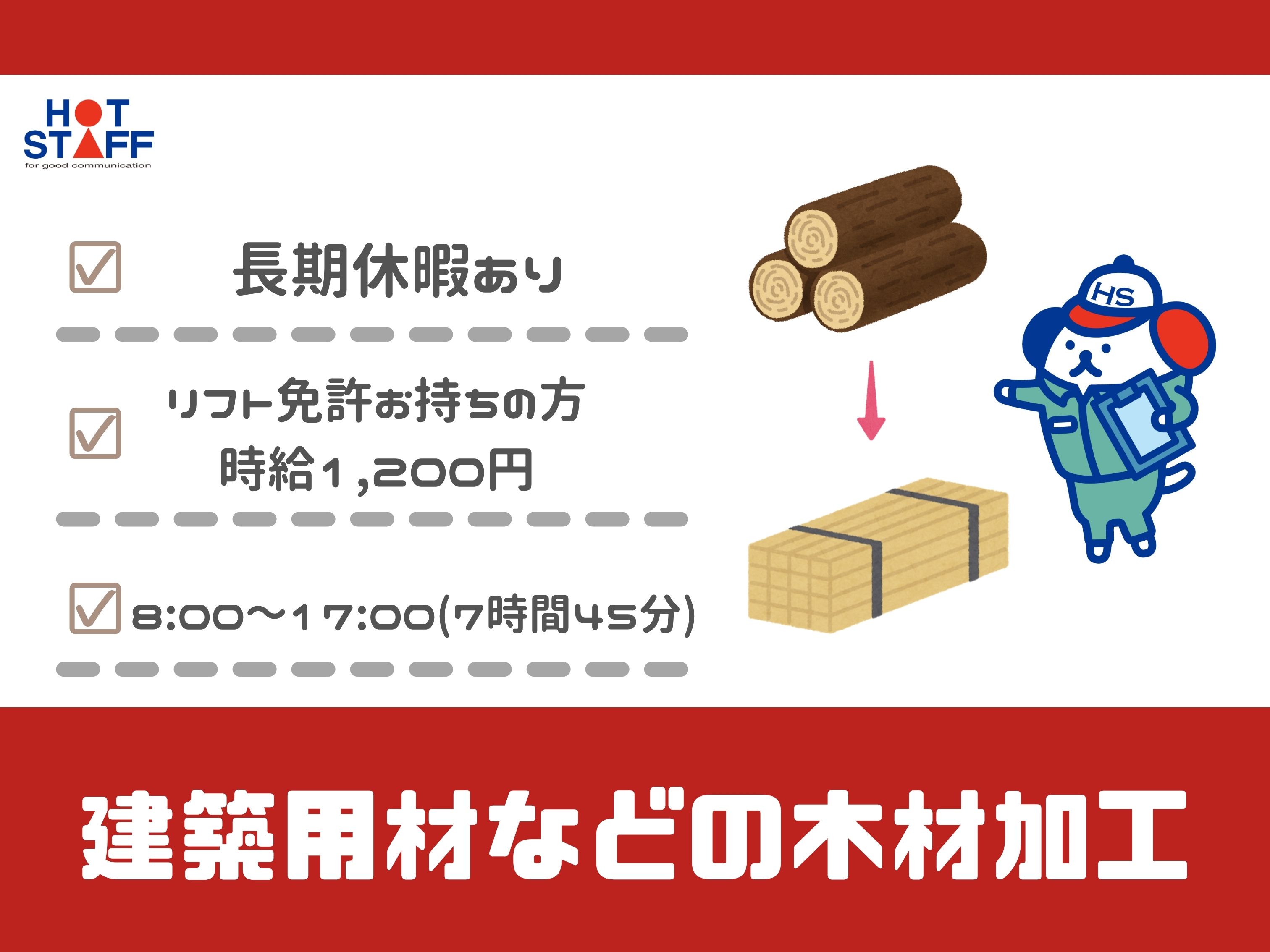 リフト免許があれば時給50円UP★/土日休み・日勤/木材のカットや加工作業