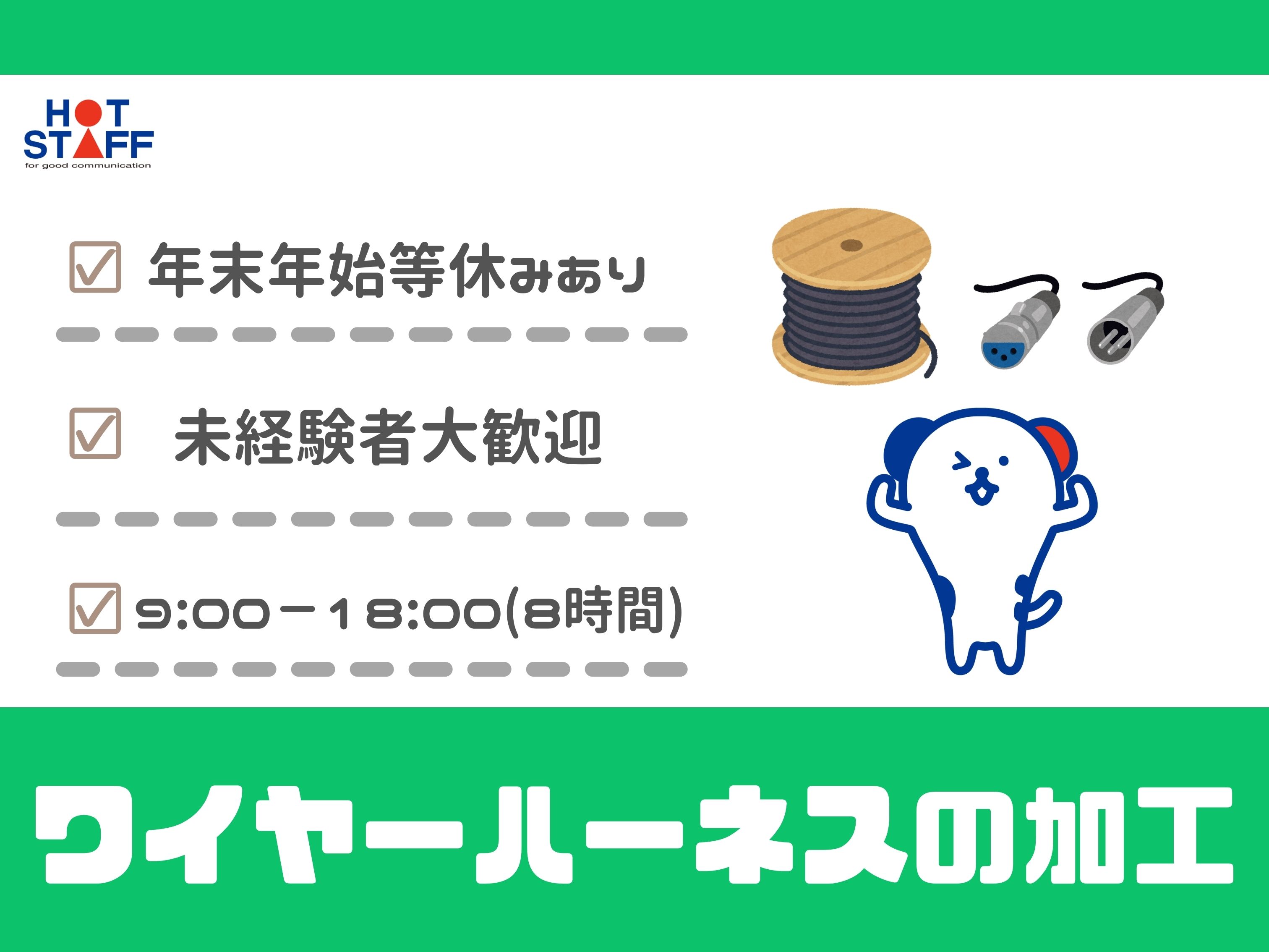 【土日祝休み・髪色ネイルピアス自由】未経験OK/年末年始等連休あり/ワイヤーハーネスの加工作業