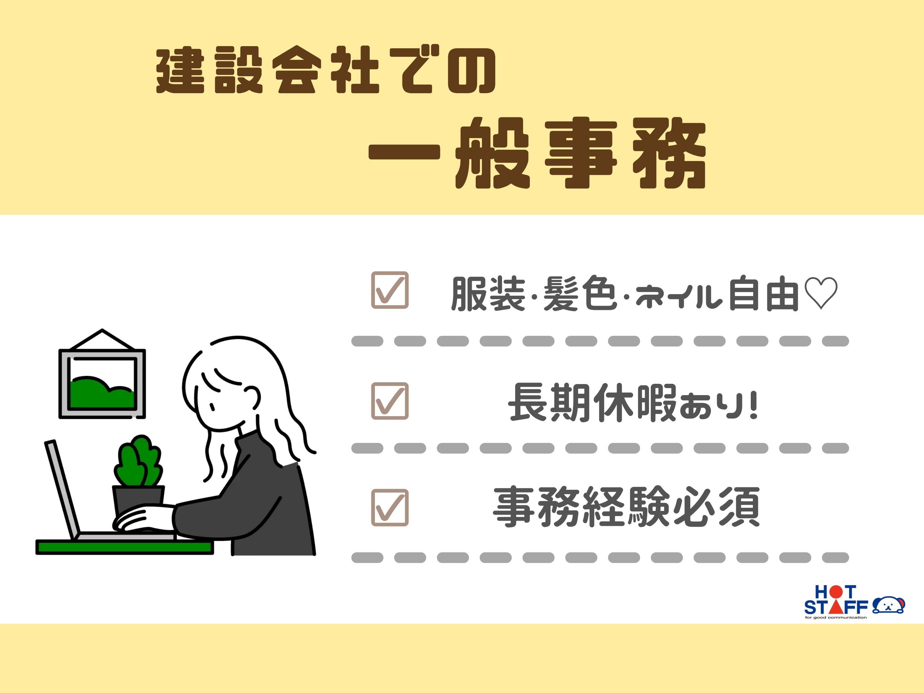 【事務経験を活かして即戦力に♪】土日祝休み/服装・髪色・ネイル自由/建築会社での一般事務