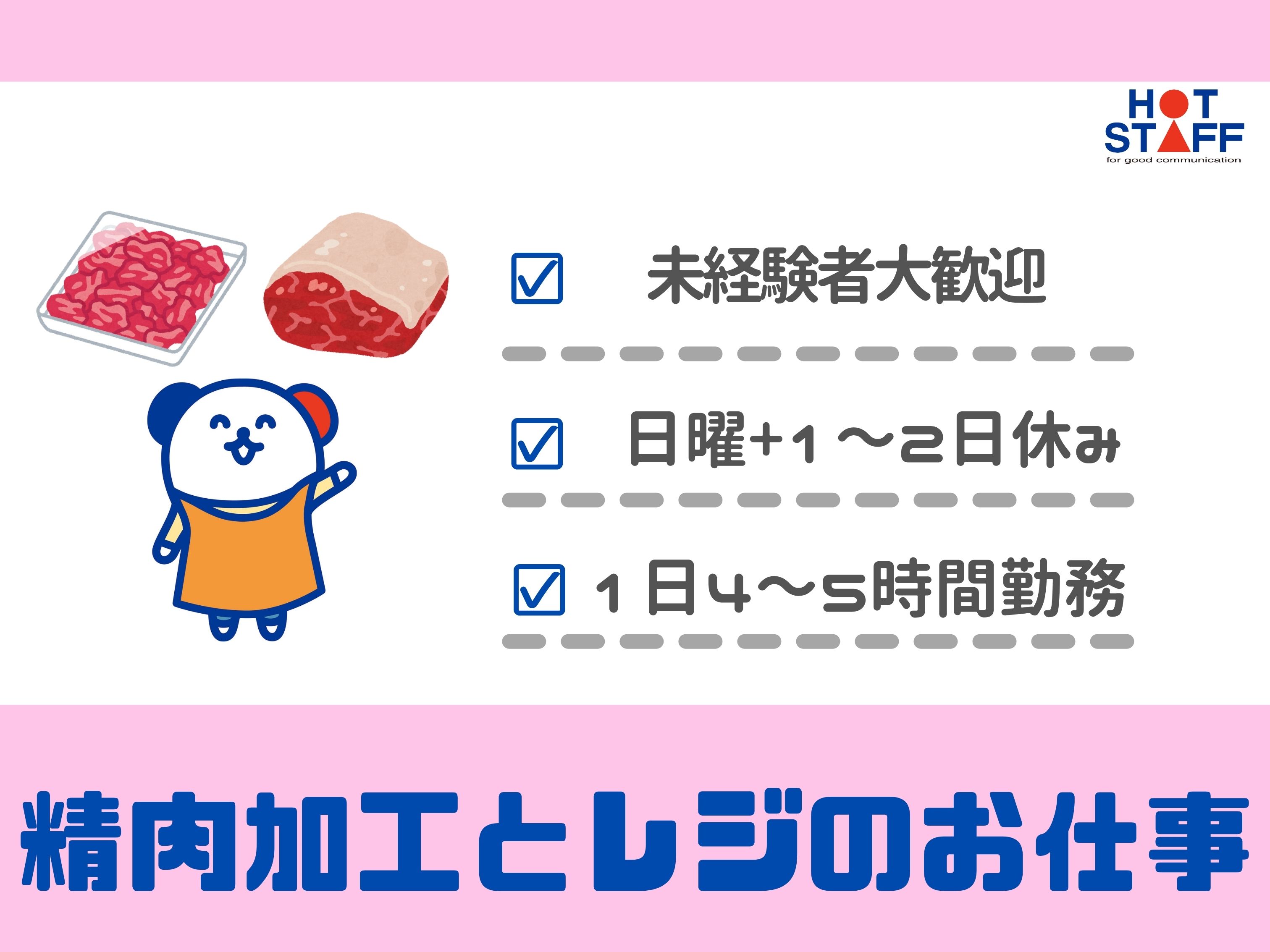 【日曜+1~2日休み★1日4~5時間勤務】未経験者大歓迎/精肉販売店で精肉カットやレジのお仕事