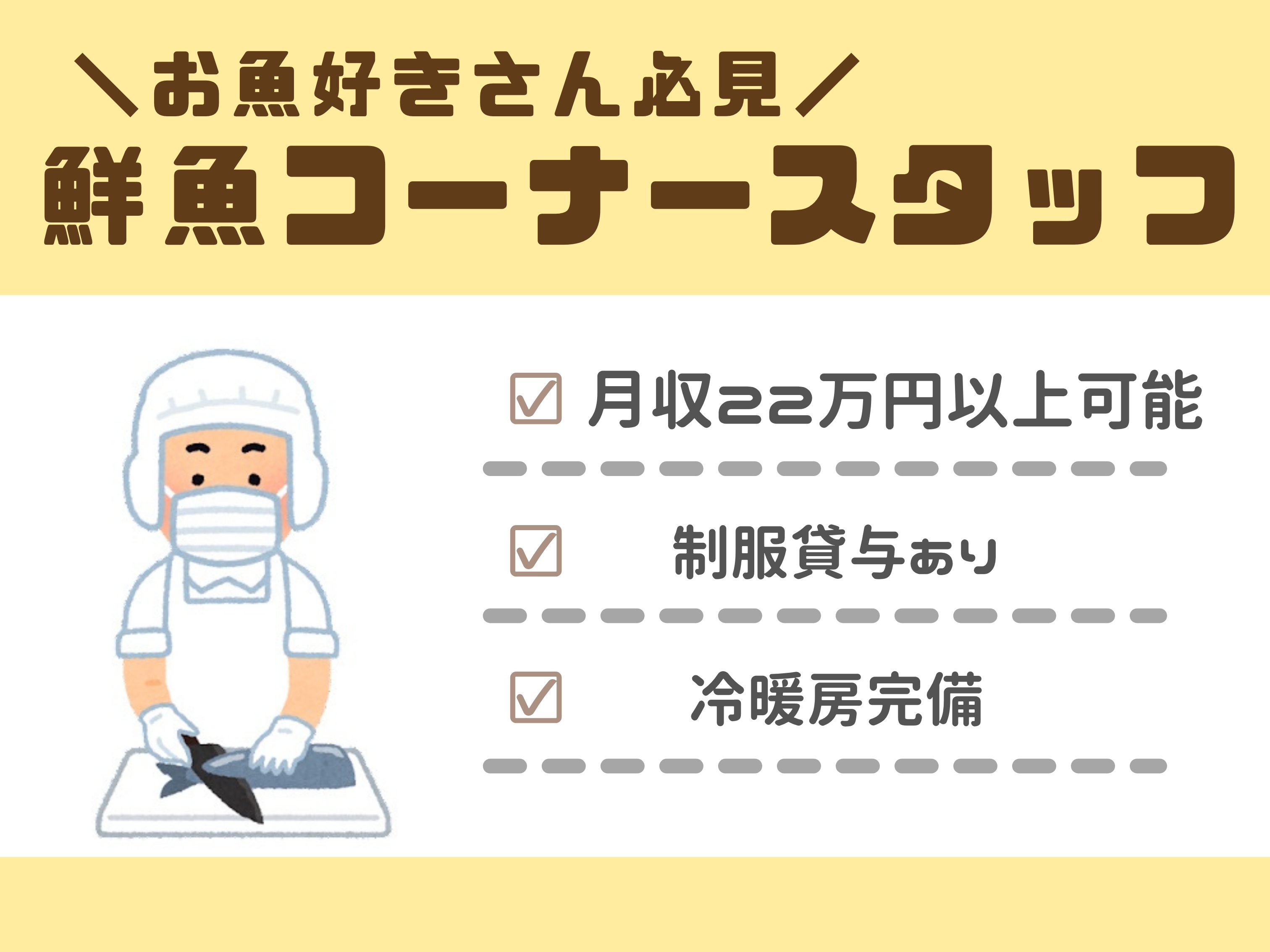 高時給1270円/8:00~17:00/フルタイム/スーパーの鮮魚コーナースタッフ/魚の処理や加工のお仕事