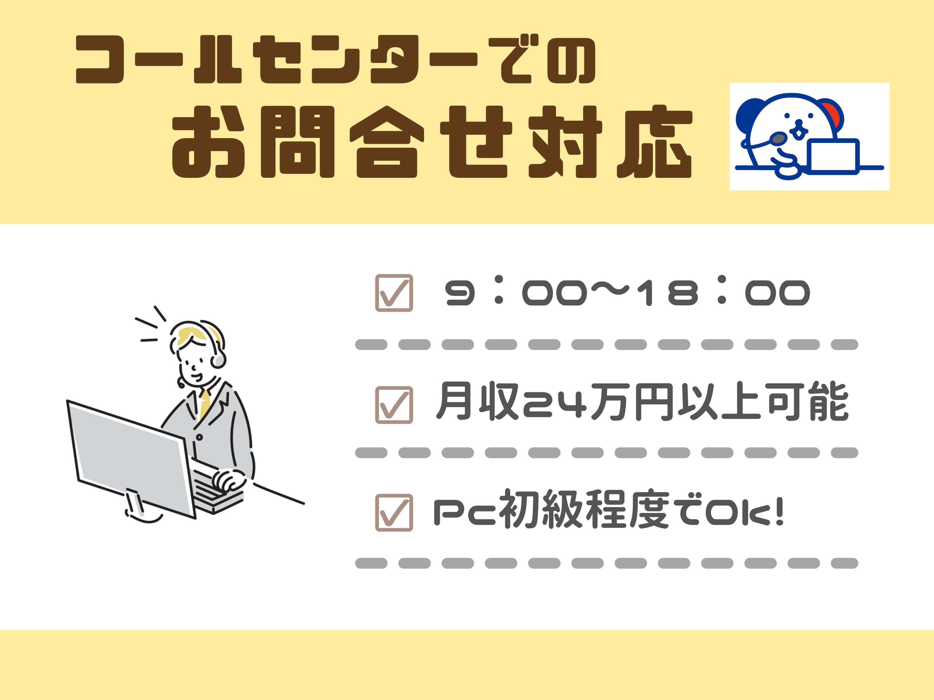 《法人向けのコールセンター》インターネット回線の問い合わせやプラン案内★長期案件で安定収入ゲットできます♪