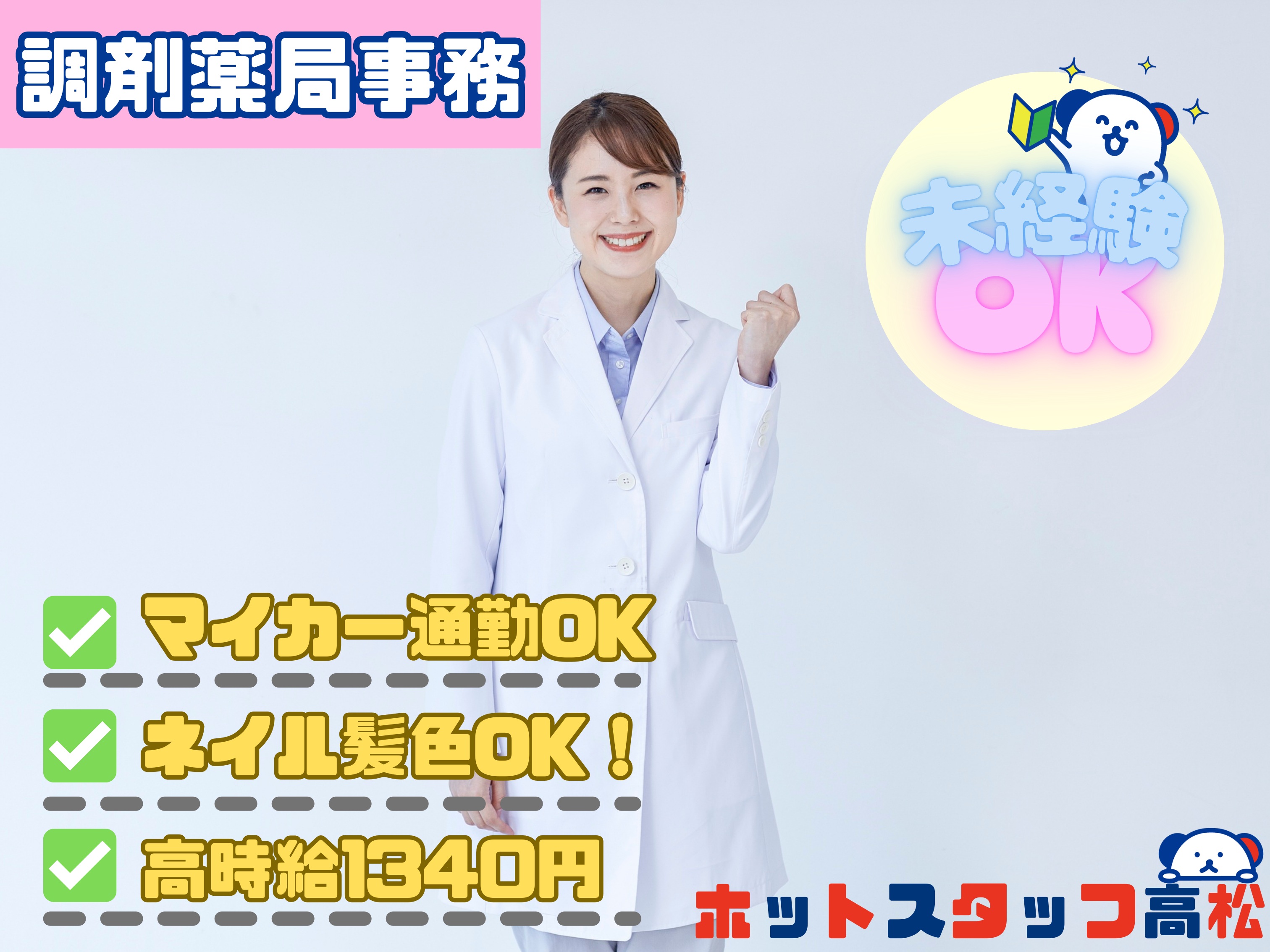★未経験OK★調剤薬局で薬局事務/基本9:00~18:00/日祝+他休み可/車通勤可/木曜半日/経験がなくても1から教えてくださいます♪