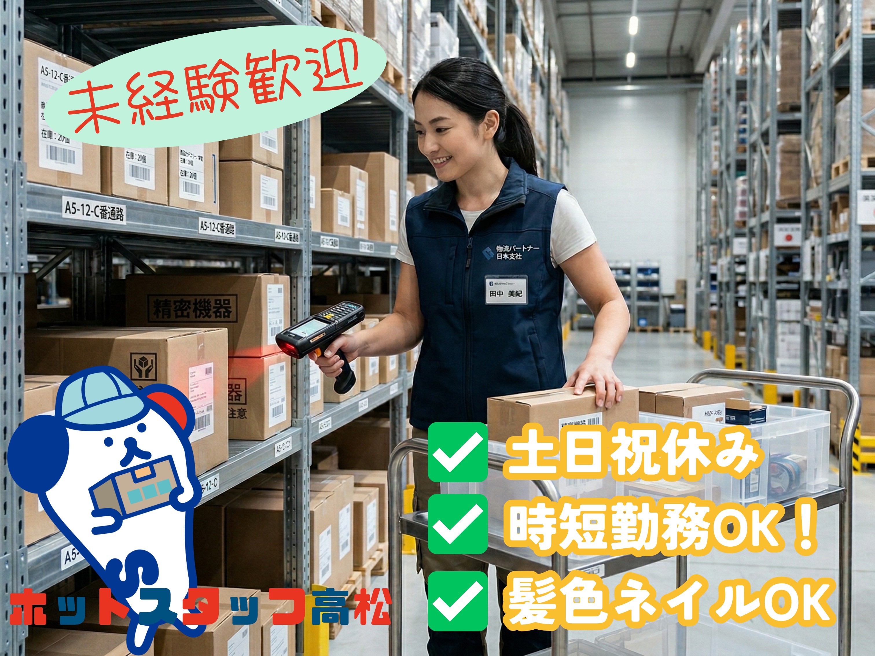 【高松市】化粧品や医薬品をピッキングして箱に入れていくお仕事/9:00~17:00/土日祝休み/未経験OK/社内にフリーWi-Fiあり!!☆彡