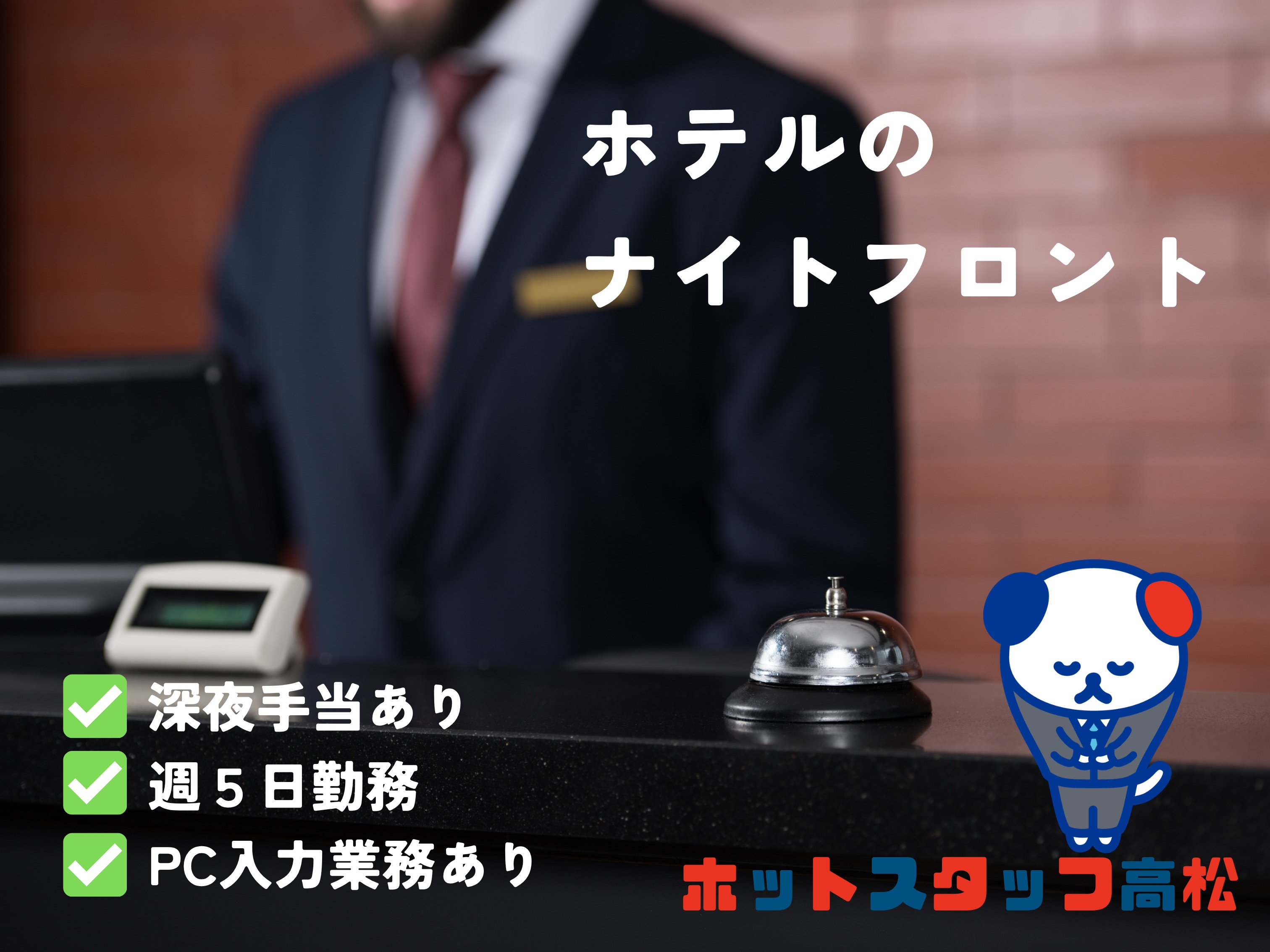 【夜勤でしっかり稼ぐ】時給1,150円+深夜手当★高松の絶景旅館でナイトフロント♪休憩たっぷり4時間×残業ほぼなし◎正社員登用のチャンスあり☆彡