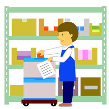 ⇒商品を棚から取り出しカートのコンテナに入れる