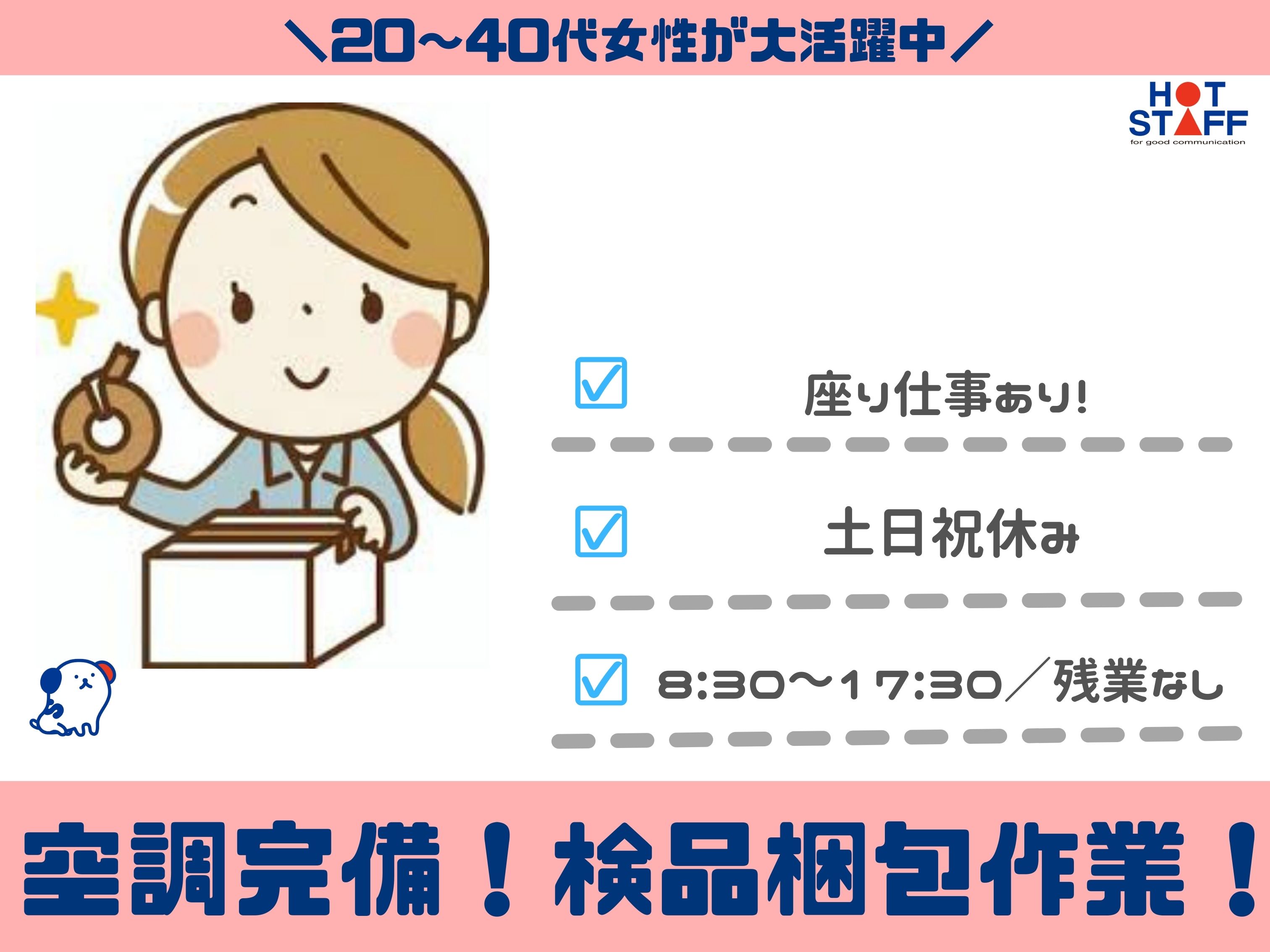 空調完備/座り仕事あり!/17:30まで、残業なし/ナイロン袋の目視検査&梱包作業