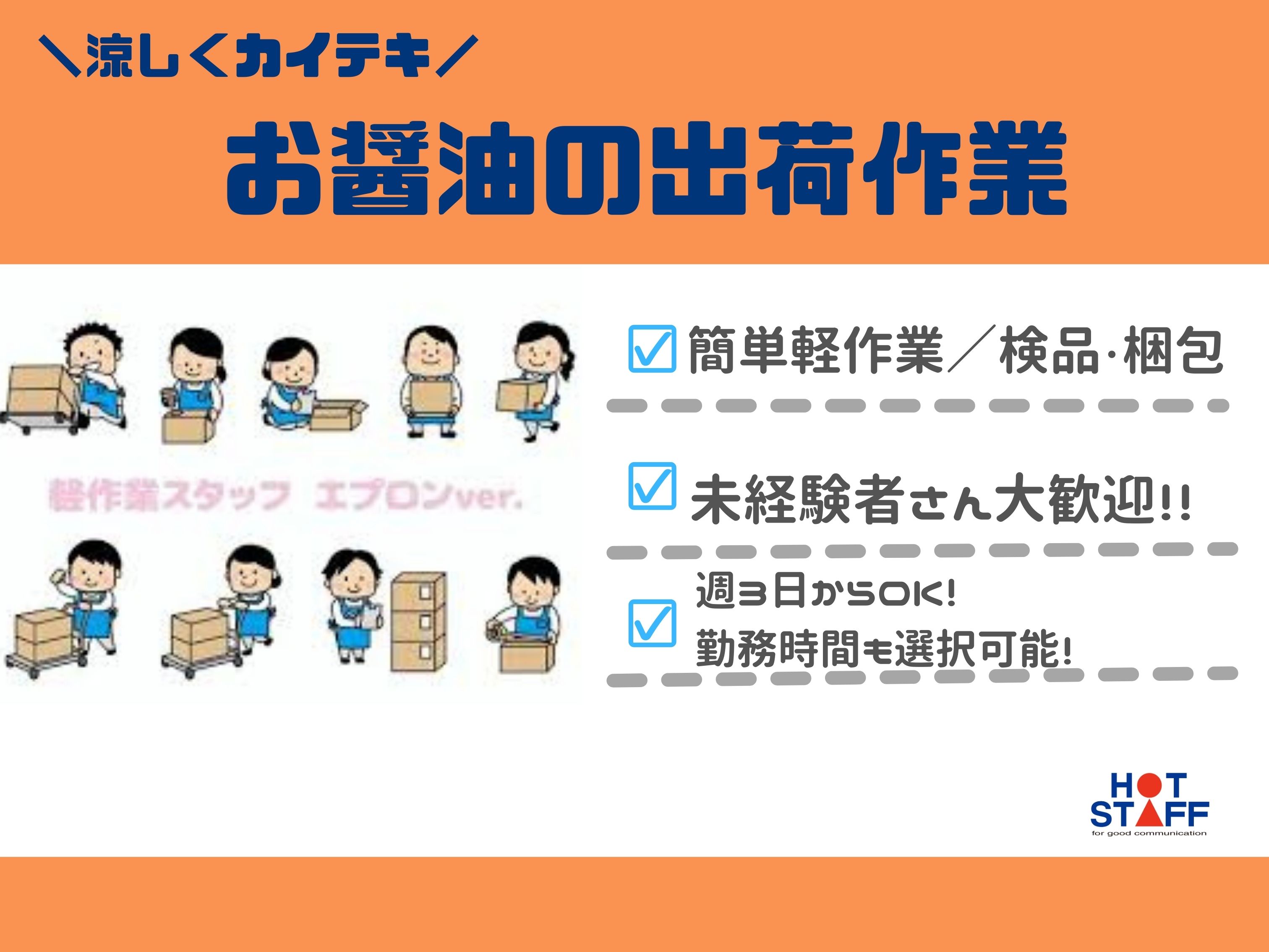 簡単軽作業/年末までの短期/勤務時間選べる/未経験者さん大歓迎/お土産用お醤油の出荷作業