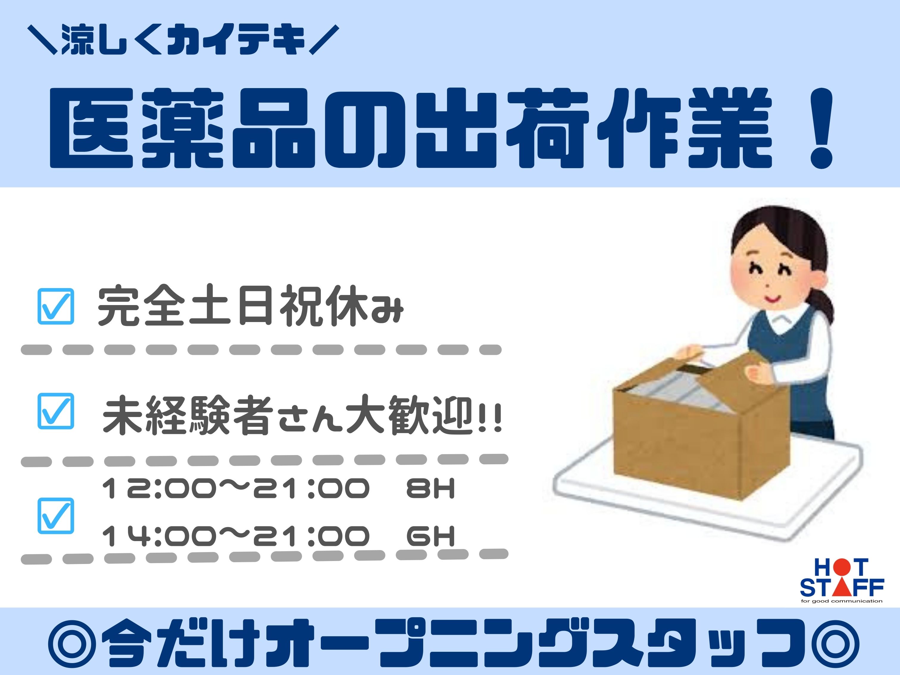 オープニングスタッフ/未経験者さん大歓迎/完全土日祝休み/空調完備/医薬品の検品&出荷作業のお仕事!