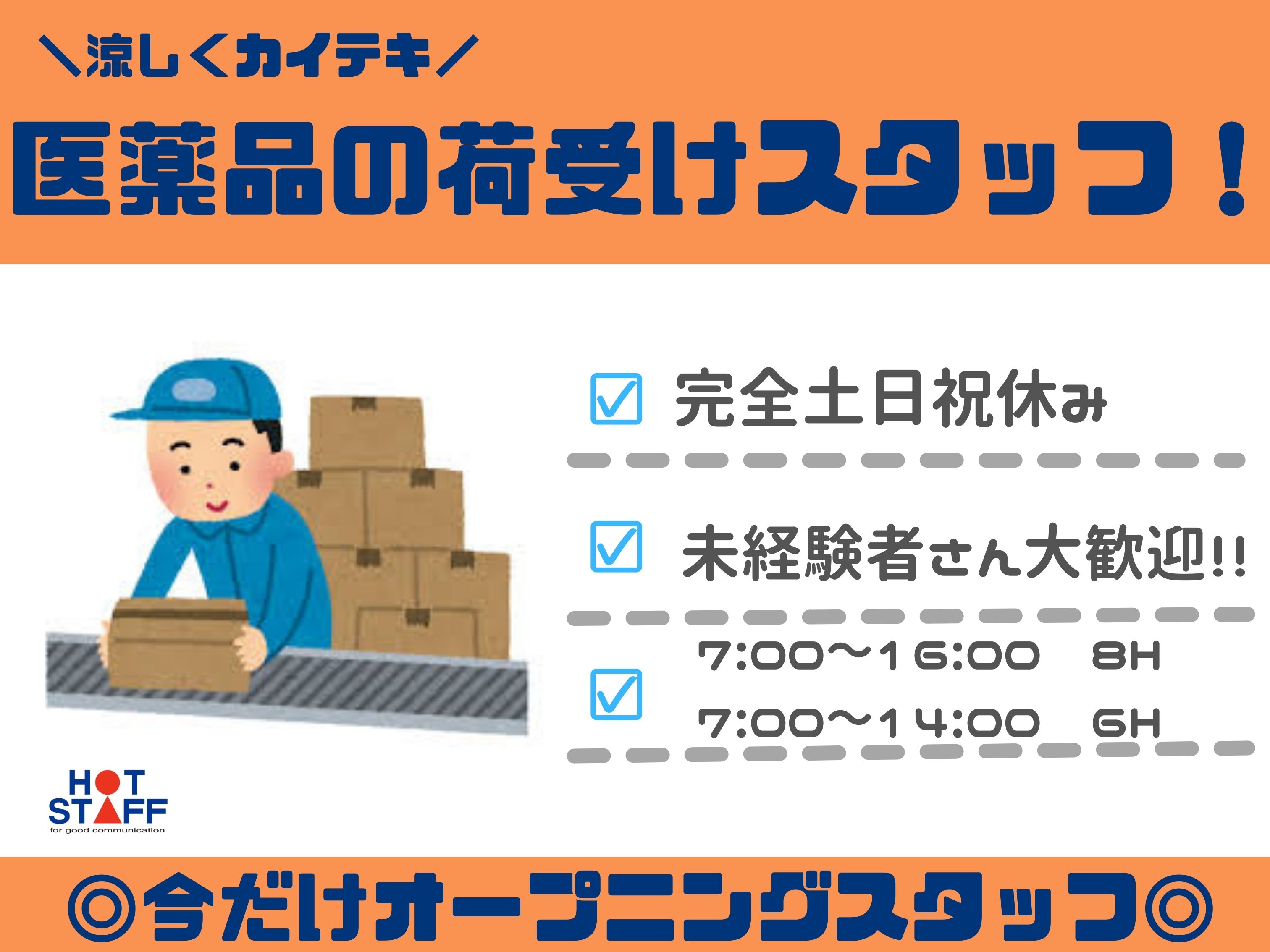 嬉しい土日祝休み/空調完備/16時まで/時短相談可能/医薬品の荷受けスタッフ