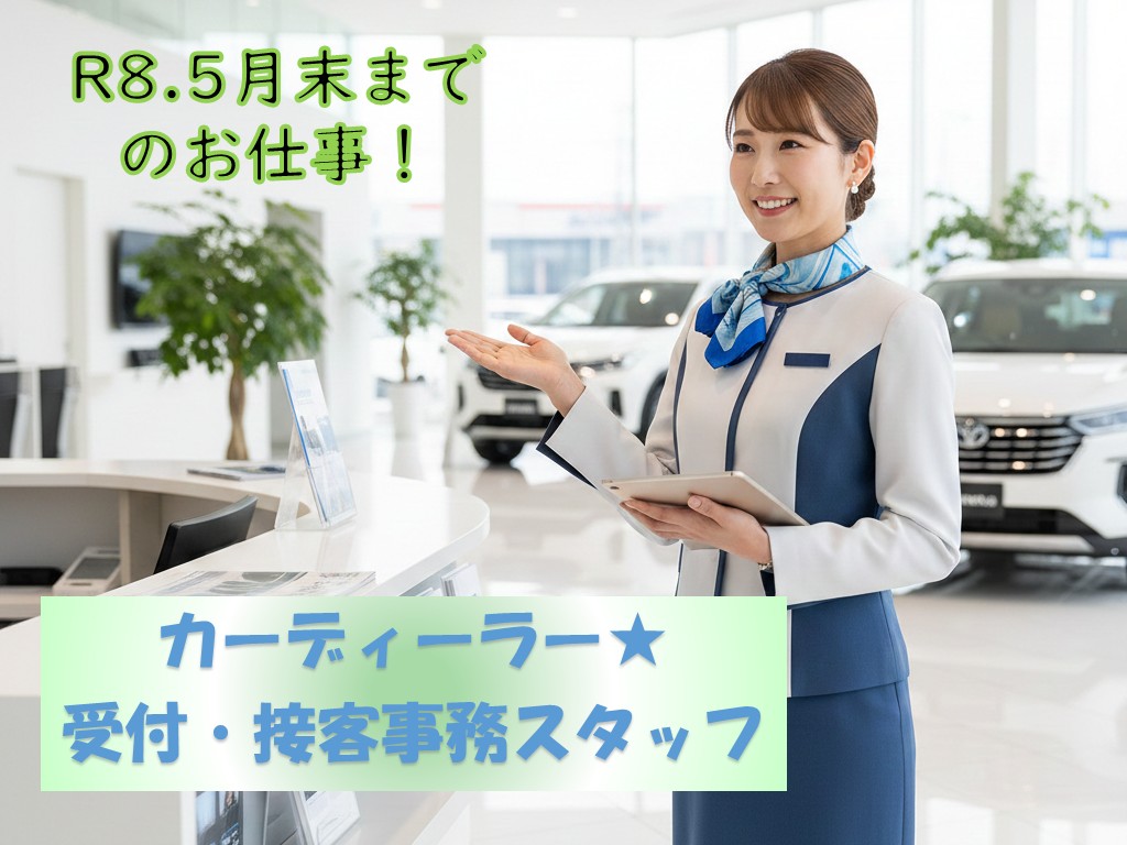 【9:00~17:30】大手車屋さんでショールームの受付事務/5月末までの勤務/ネイルピアスOK