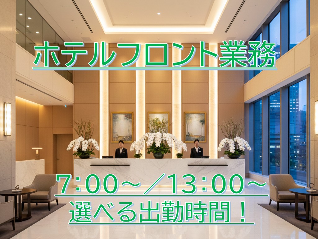 【7:00~と13:00~】出勤時間選べます/実働8hシフト制/ホテルのフロント業務/未経験歓迎