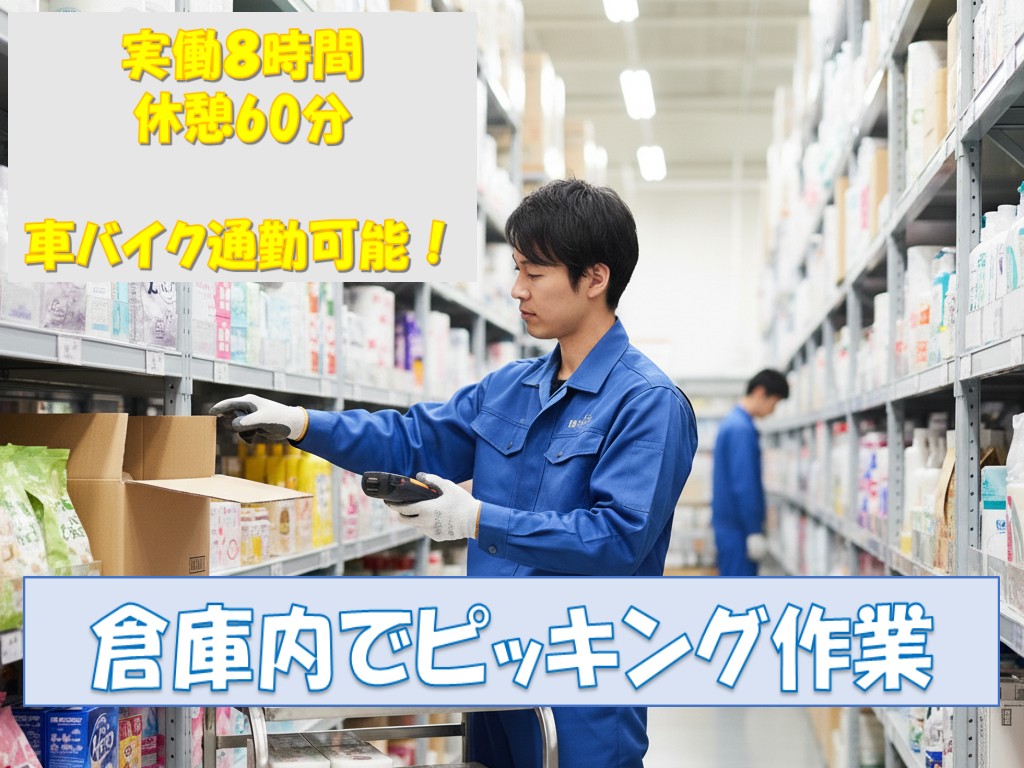 倉庫内で日用品の仕分け/重たい商品は台車ですいっと運びます/未経験歓迎/フルタイム勤務