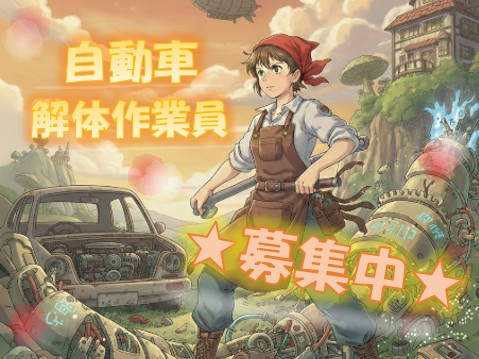 【8:30~17:00】自動車解体作業員/未経験歓迎/ネイルピアスOK/アットホームな職場
