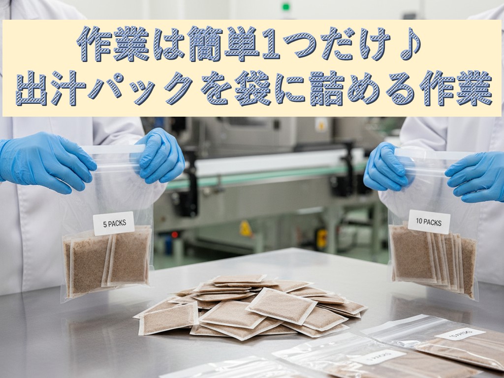 正社員登用のチャンスあり/食品製造/粉末のだしパックを小袋に詰めるだけ/未経験歓迎/土日祝休み