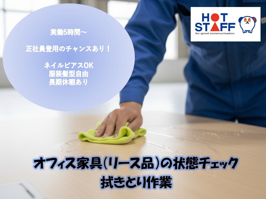 オフィス家具の状態チェックやふき取り作業/どなたでも活躍できます/髪型も服装も自由/勤務時間の相談可