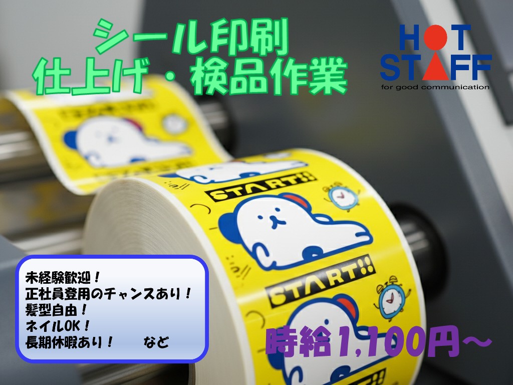 高時給/印刷されたシールを機械で回収とカット/目視で不良品確認/正社員登用のチャンスあり