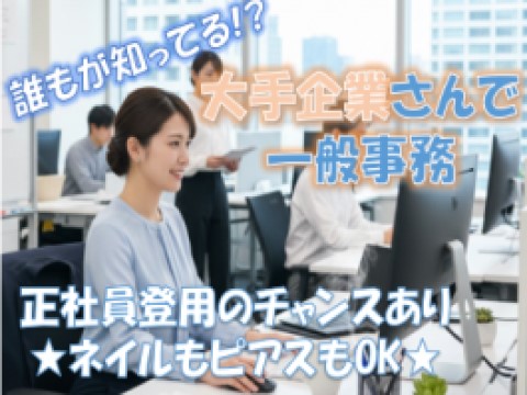 皆さんご存じ/大手企業さんで一般事務/ネイルピアスOK/髪型髪色自由/今しかないチャンス