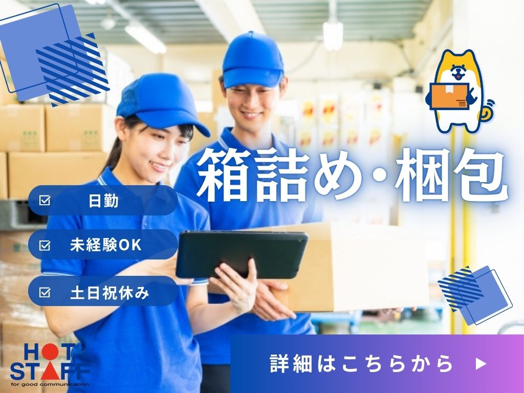 【空調完備】9~17時・土日休み|レーンに流れてくる商品を箱詰め→テープで蓋をする単純作業♪
