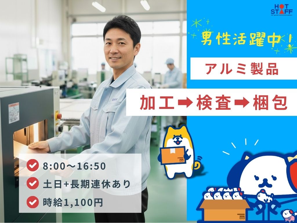 日勤・土日休み|重量物ナシ♪基本1人でモクモク作業◎アルミ製品をぐるっと梱包する軽作業!