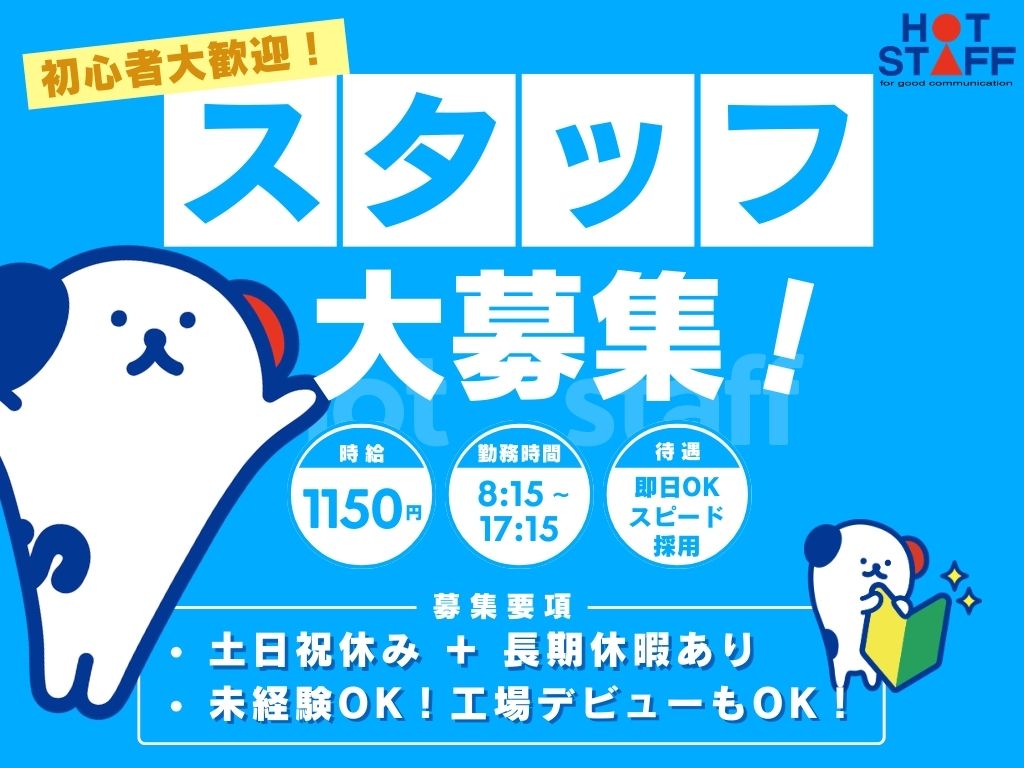 日勤専属・土日祝休み|未経験活躍の工場ワーク|製品をピカピカつやつやに★残業で稼ぎたい!もOK◎