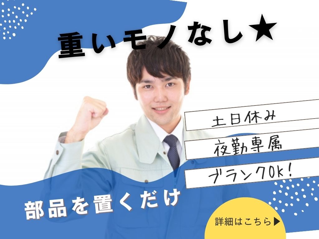 選べる夜勤2パターンから!単純作業の繰り返し・部品を機械に置くだけ・夜勤専属・モクモク1人作業