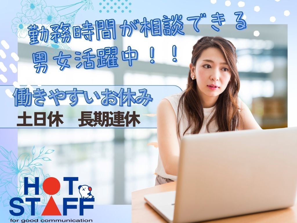 8:30~17:15|完全週休二日制!年間休日127日◎事務スタッフ・時給1300円★空調完備