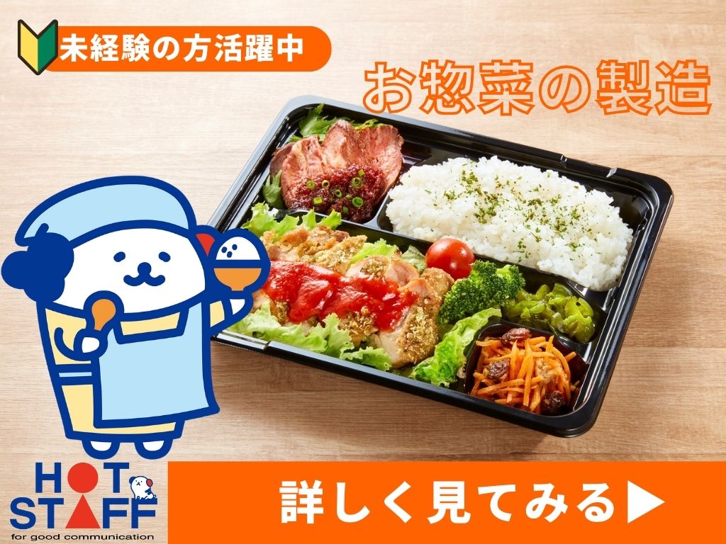 料理が苦手な方も2週間も経てばベテランさん♪ポテトサラダや唐揚げなどの盛付け・パック詰め◎