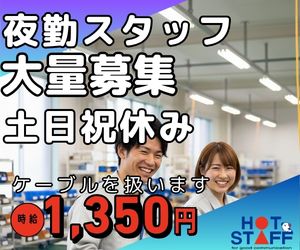 21:00~5:45|夜勤専属・土日祝休・ケーブルを束ねてキズをチェック★カンタン作業で高収入をGET◎
