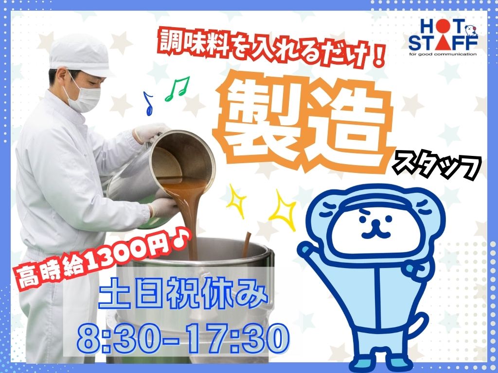 8:30~17:00|土日祝休|高時給1300円!機械のサポートがメイン♪粉末スープを作るお仕事★