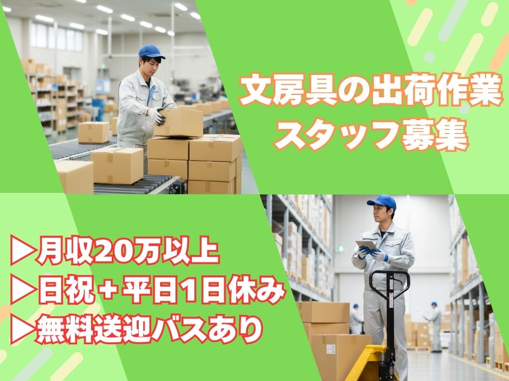 \日勤帯で安定して働ける/最寄駅から無料送迎バスあり◎未経験OK!ファイルなどのカンタン出荷作業♪