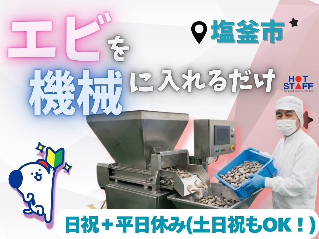 【カンタン軽作業&大量募集】みんな一緒にスタートで安心♪エビを洗ってざるで機械に入れていくだけ◎