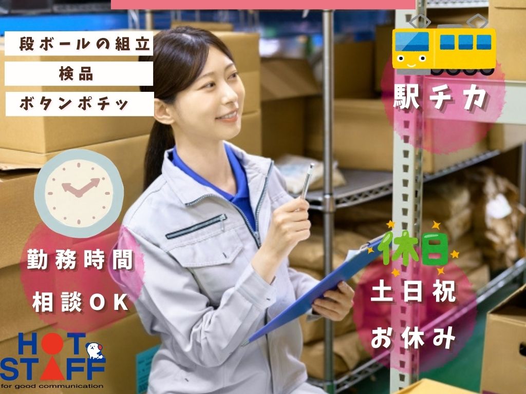 【土日祝休み×駅チカ】段ボール組立や検品など、覚えやすい軽作業が中心・空調完備の快適室内◎