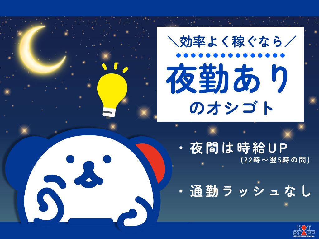 力仕事「ゼロ」ワーク◎夜勤で収入UP♪シンプル作業のくりかえし!モクモクと作業に集中したいあなたへ★