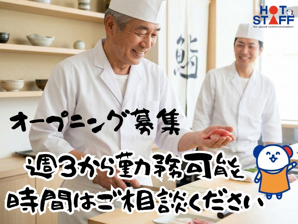 【オープニング】週3日でも週5でも!選べる勤務時間◎一度現場を離れたけどまた包丁を握りたい方応援◎