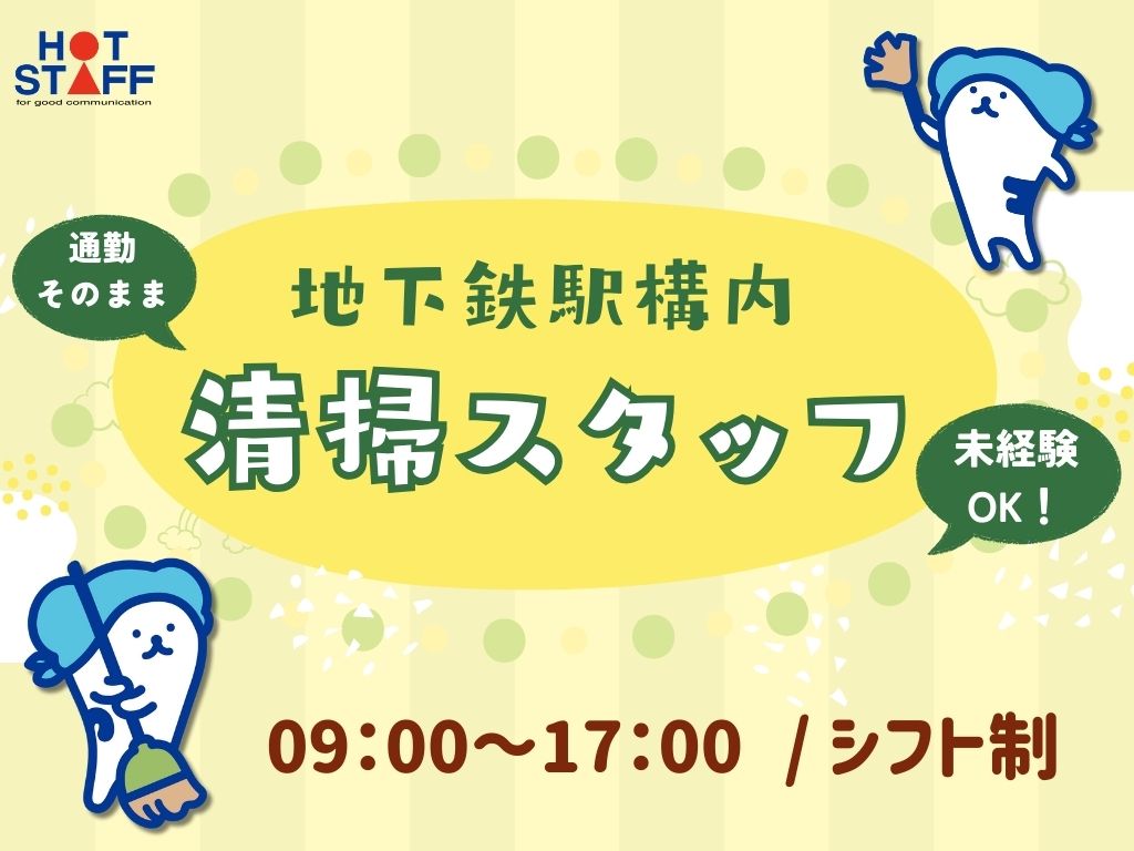 【東西線で1日完結!】日勤9時スタート・週休2日|駅の通路や手すりの清掃スタッフ♪未経験OK☆