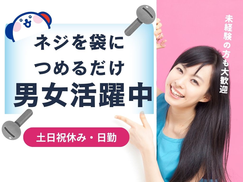 8:30~17:30|土日祝休み・ネジ・ナットの仕分け・袋詰め・やることはぜ~んぶ指示通り…◎