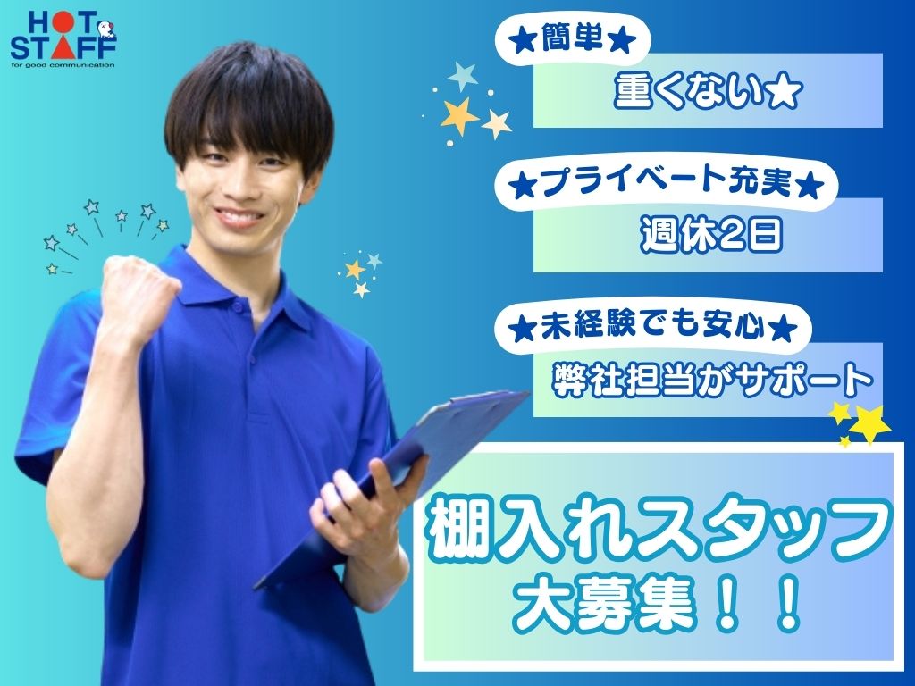 17:15〜22:15|後ろからポイポイ商品を棚へいれる軽作業|年末年始は12/31~1/6までお休みです!