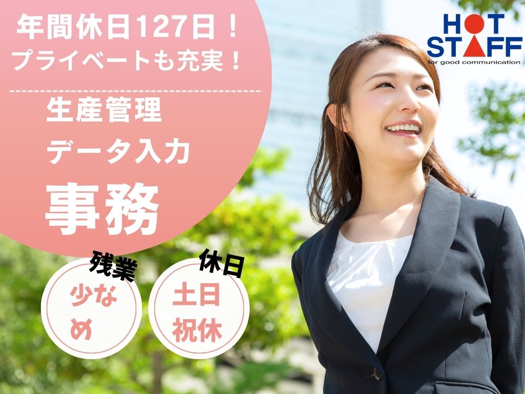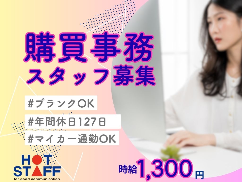 8:30~17:15|しっかり休める!年間休日127日・工場での購買事務スタッフさん★時給1300円