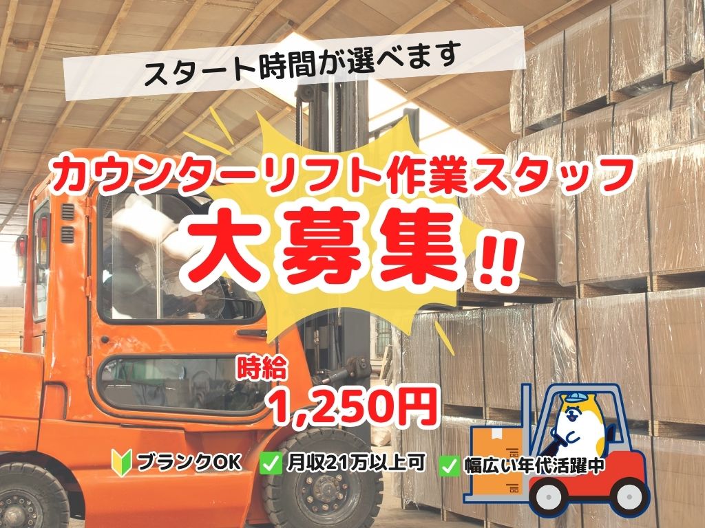【8:00~/9:00~えらべる】日祝+平日休み|座って作業のカウンターリフトで楽々!