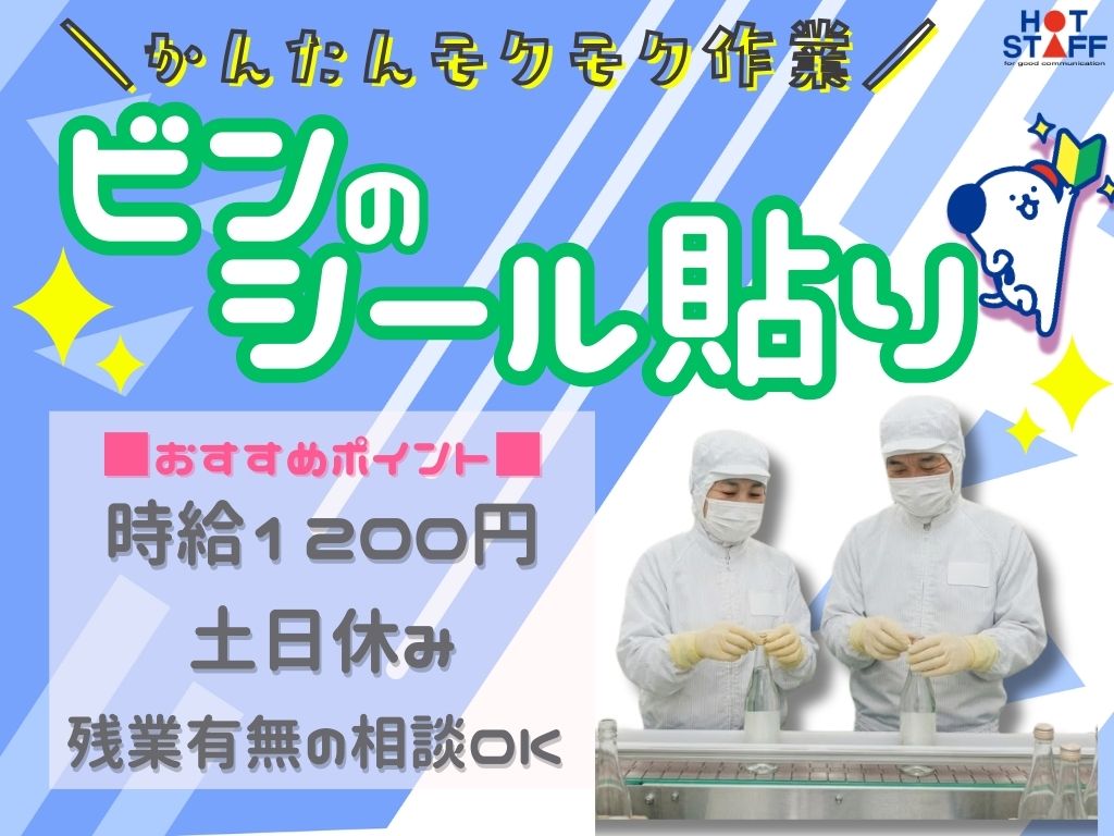 高時給1200円で稼げる!|土日休×残業有無の相談OK|流れてくるビンにペタッとかんたんシール貼り♪