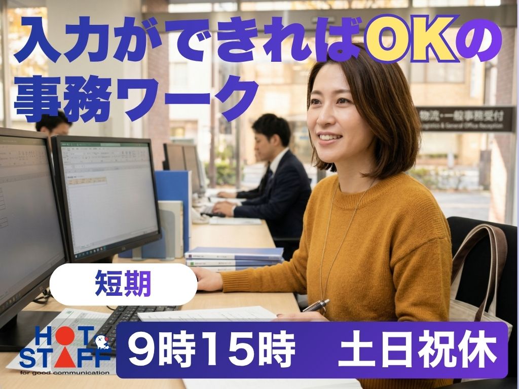 9時~15時【短期】土日祝休・PCで文字入力ができれば◎・伝票の仕分けやデータ入力メインの事務スタッフ