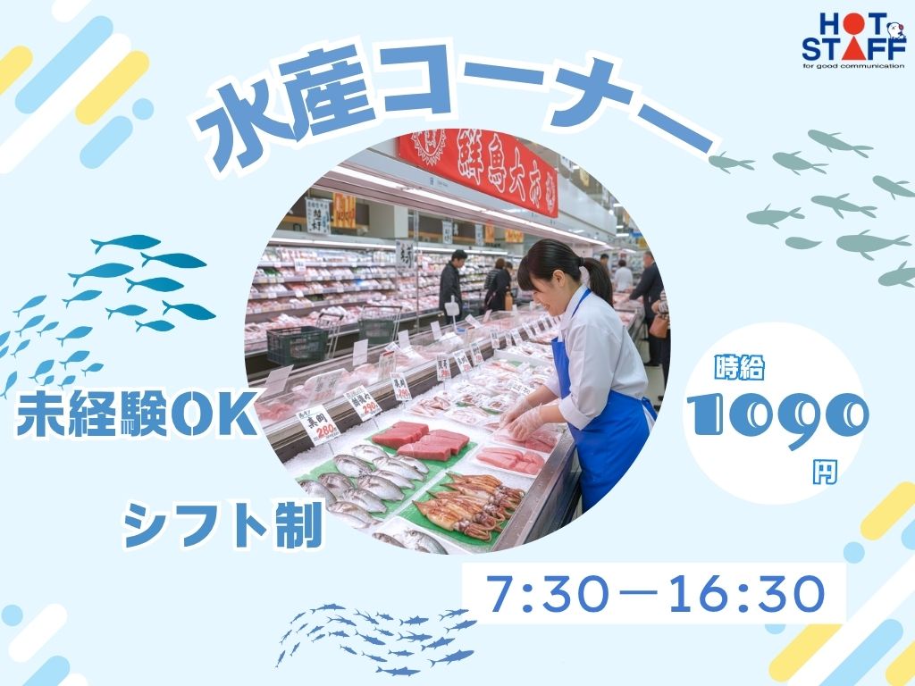 【駅チカ】7:30~16:30・週休2日|未経験スタートも◎|お魚のかんたんカットやラベル貼り♪