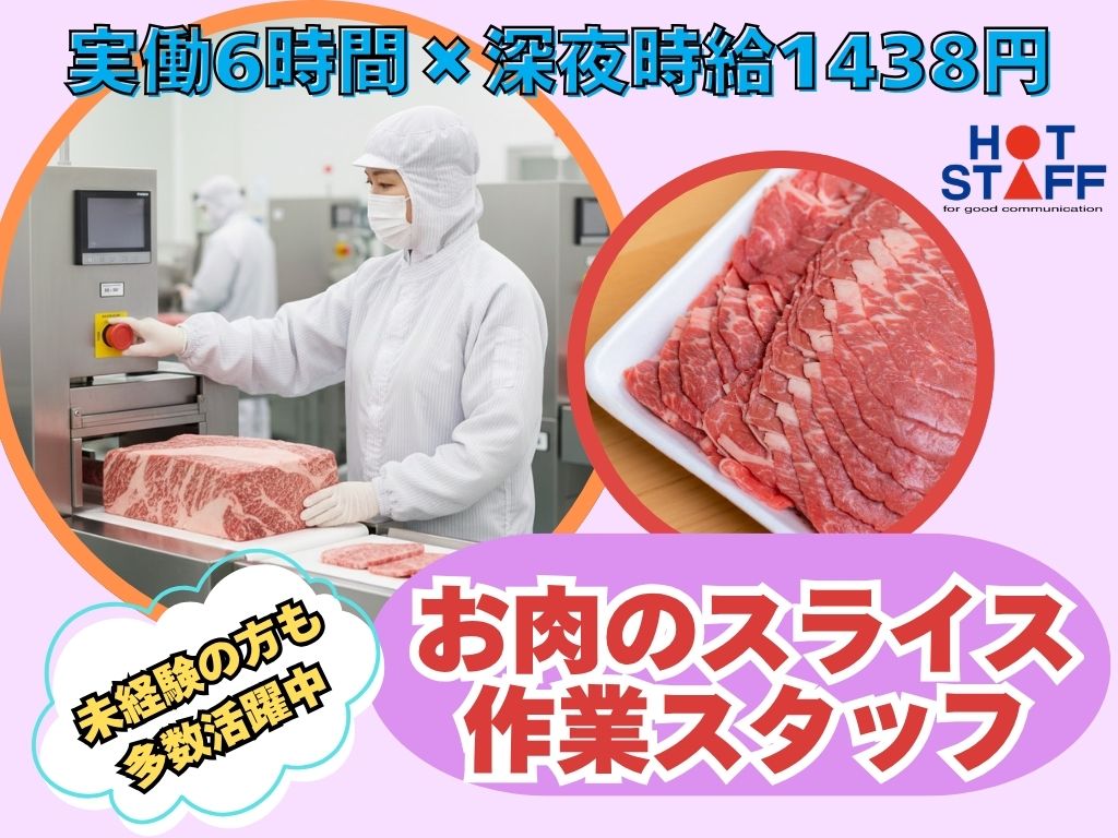 深夜時給1438円でがっつり稼ぐ★未経験の方もすぐに活躍できる♪お肉を計量!機械で簡単スライス!