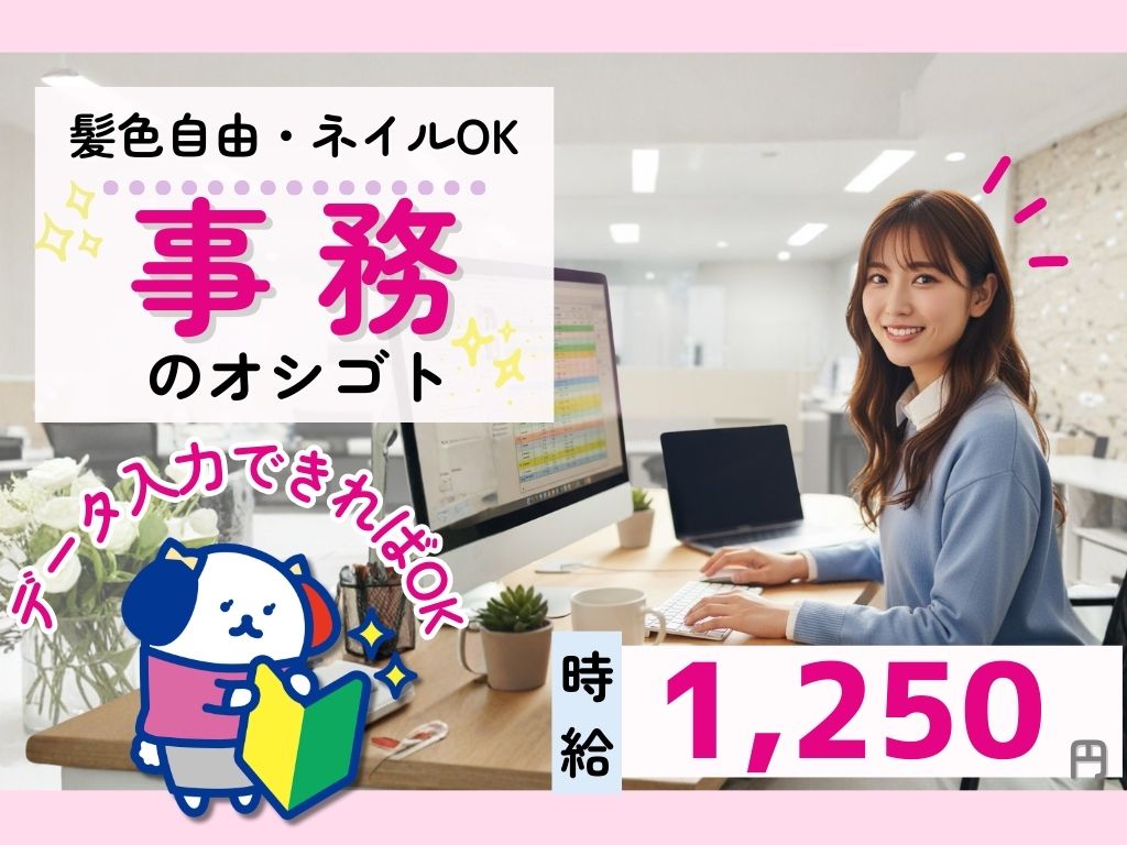 8時半~17時半|日・水休み|毎月安定して約21万の収入ゲット|文字入力できればOK!簡単事務作業♪