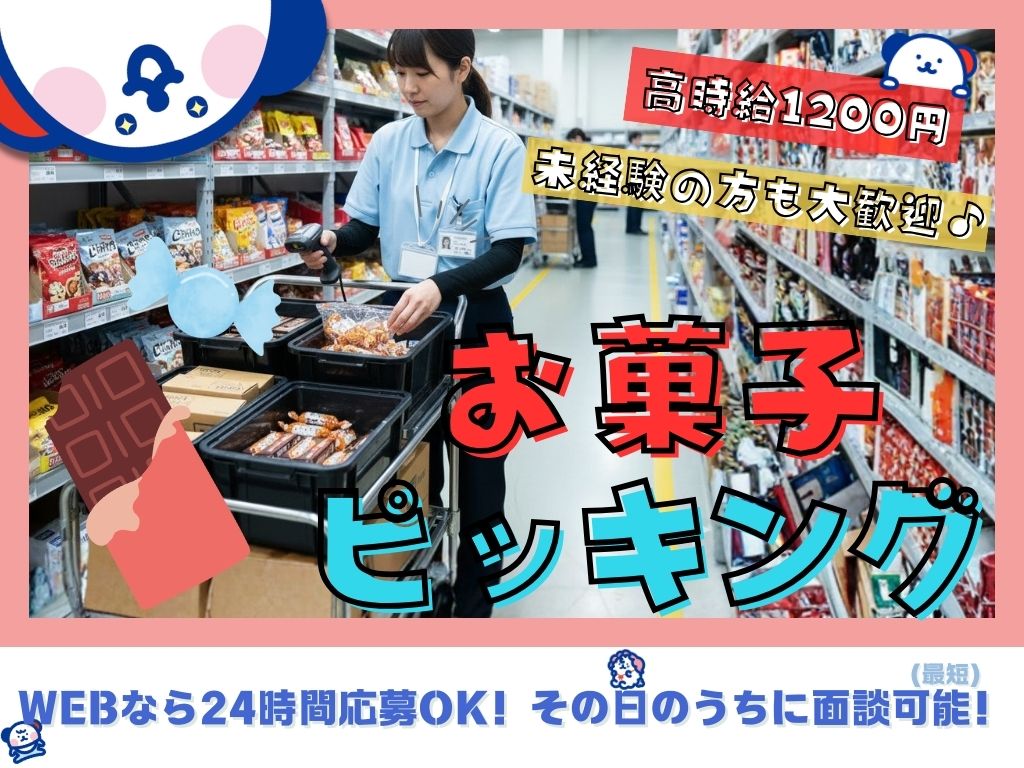 14時~23時|シフト制×服装自由|みんな知っているデザートやお菓子などドラックストア商品の仕分け◎