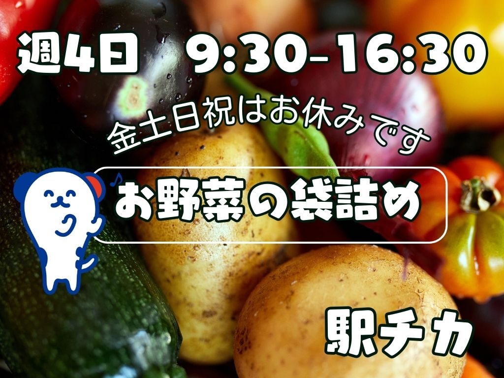 9:30~16:30|週4日♪・金土日休み・駅チカ・身近な野菜だから安心!未経験でも始めやすいんです★