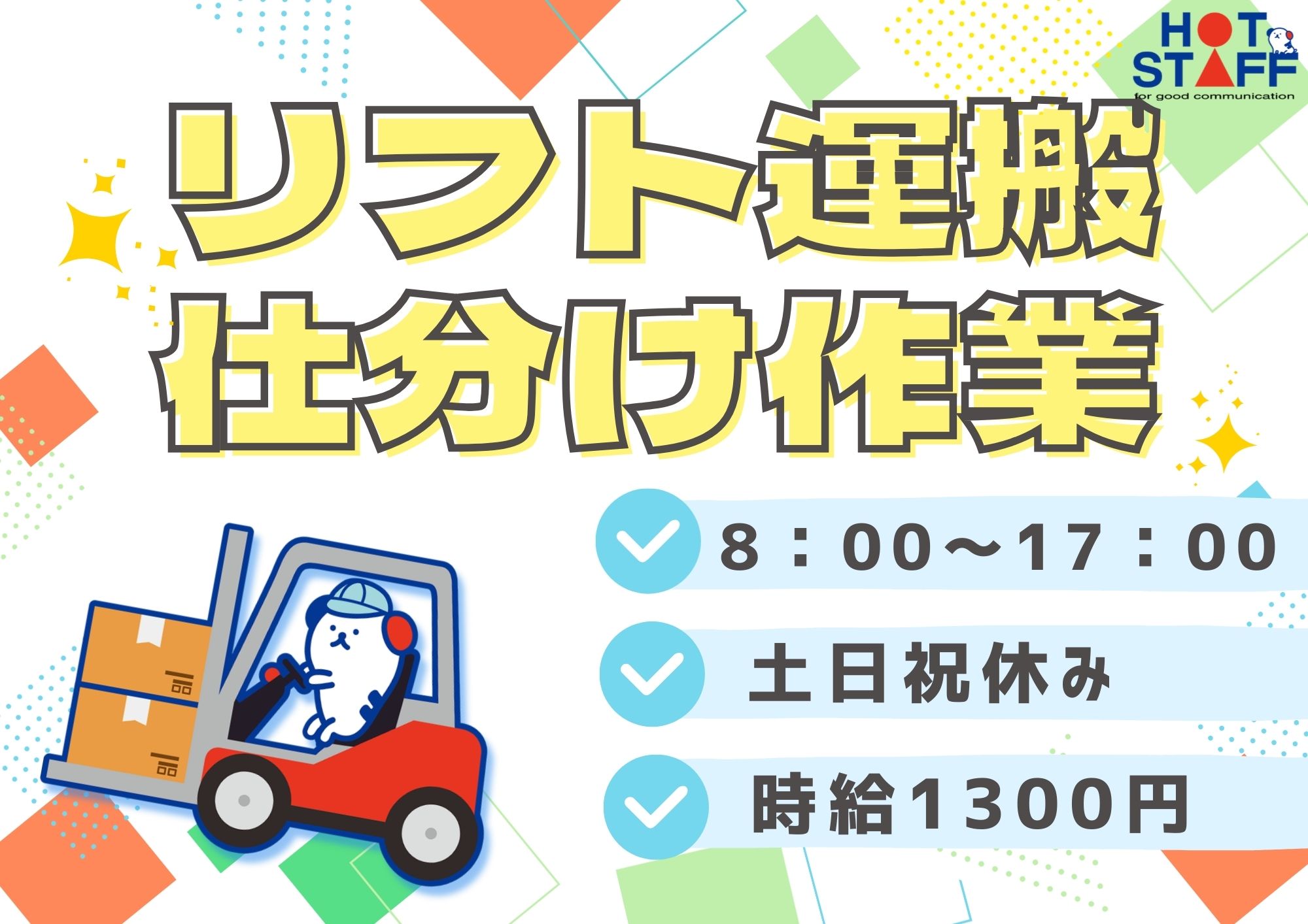 ★派遣先で直接雇用のチャンスあり★高時給1300円&土日祝休&駅チカ|仕分けとリフト運搬をお任せ!