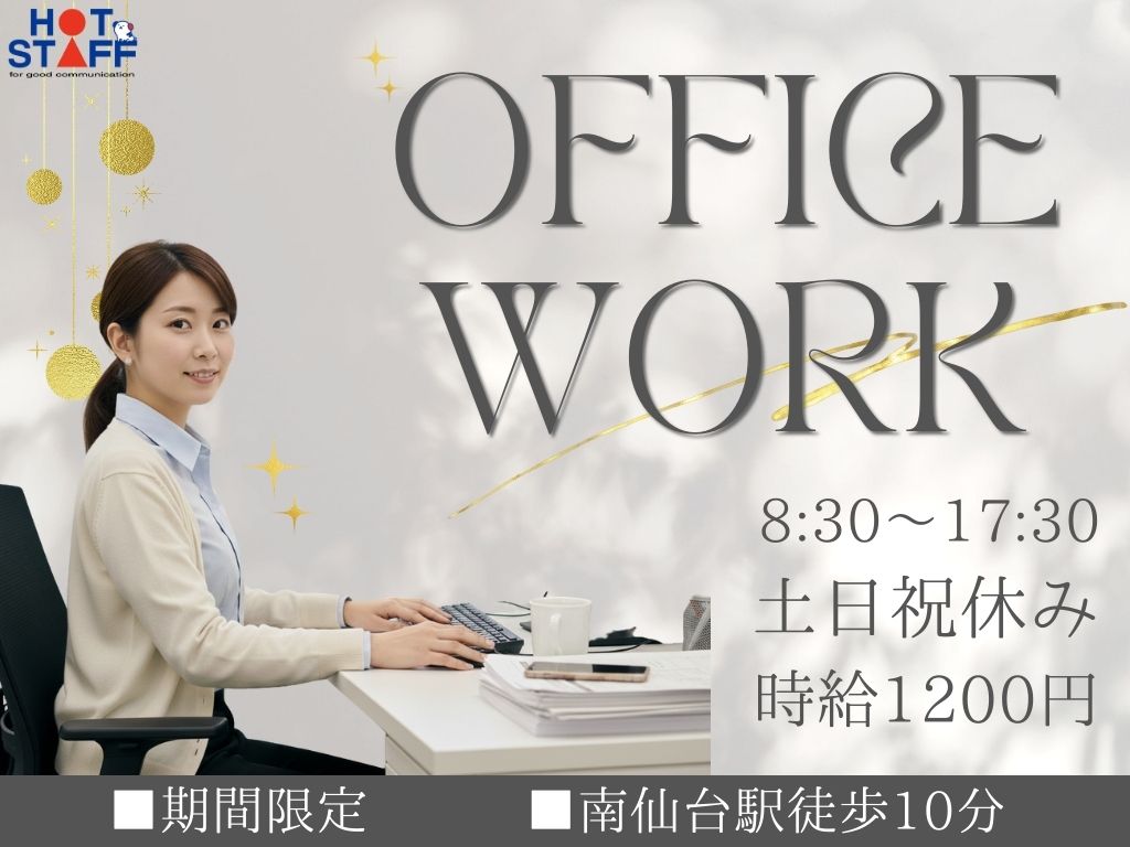 南仙台駅より徒歩10分◎土日祝休み|データ入力や発注の営業事務|オフィスカジュアル・ネイルもOK!