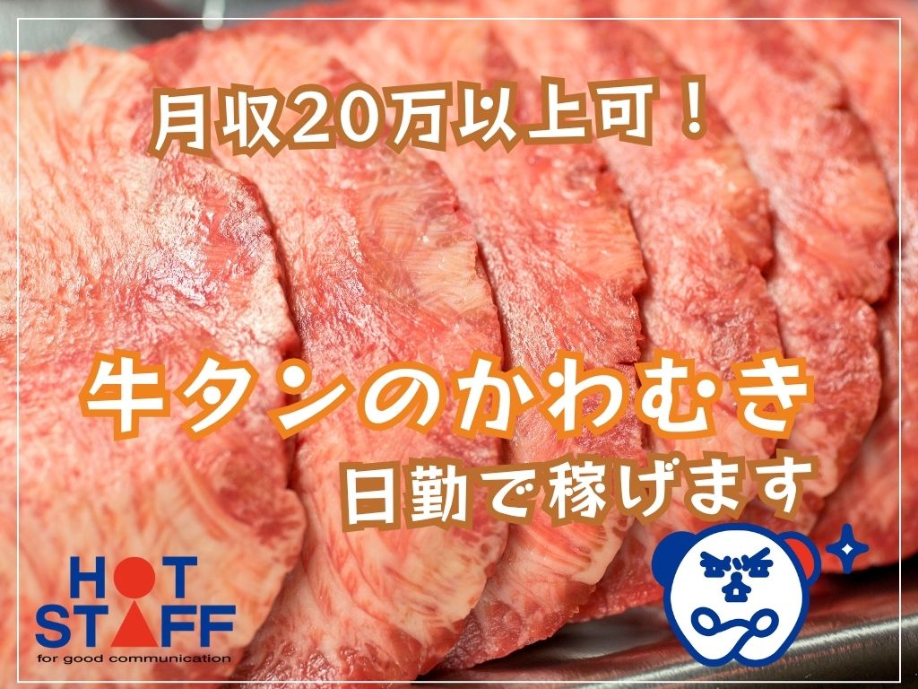 \勤務時間3パータンから/駅チカ・スライサーで牛タンの皮をサッと剥くだけ★室温18℃で年中快適!